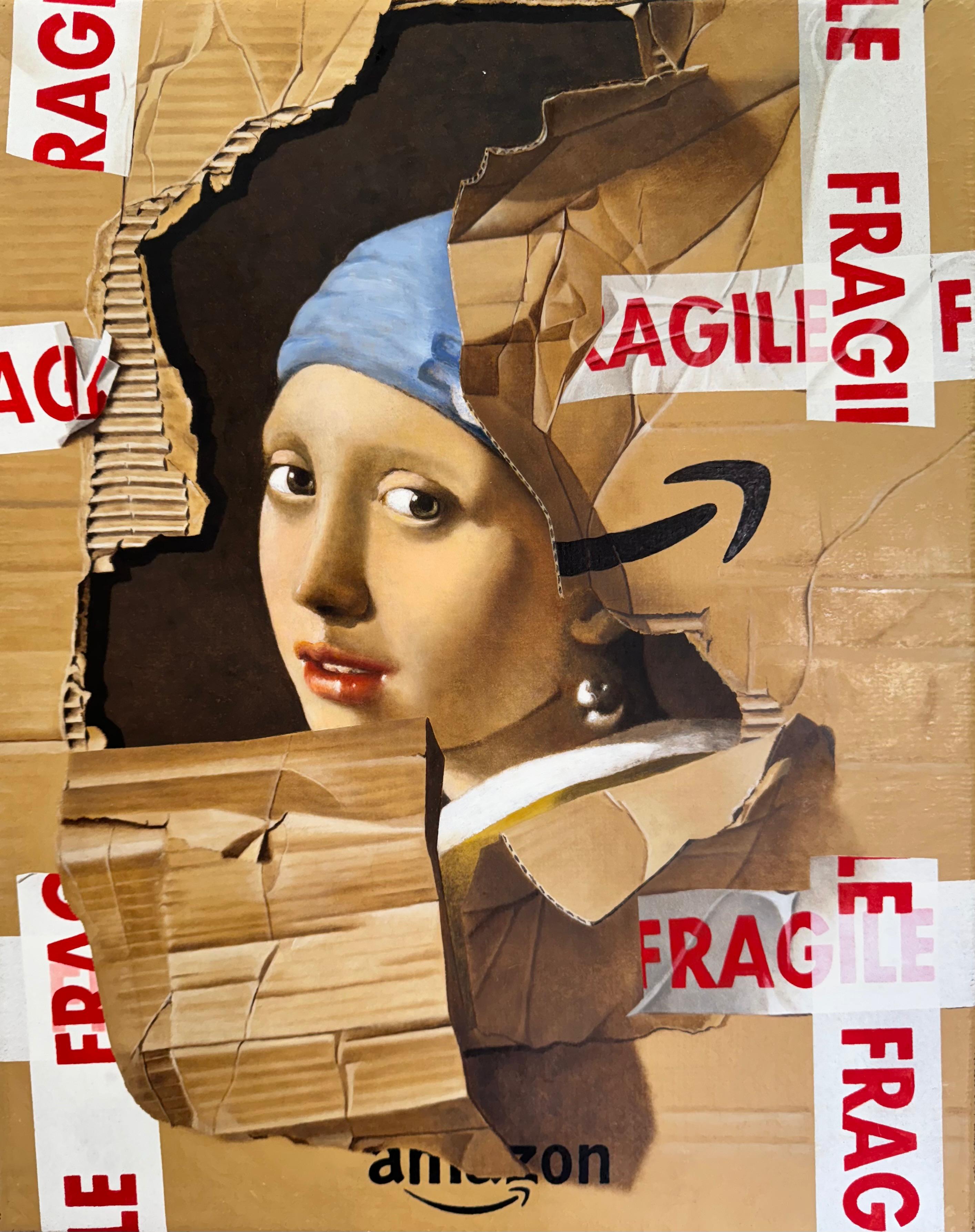 Fabio Inverni crea un affascinante cortocircuito tra passato e presente, tra la sacralità dei grandi capolavori della storia dell’arte e la loro trasformazione in semplici prodotti di consumo, acquistabili online e recapitati a domicilio come qualsiasi altro oggetto commerciale. Nelle sue opere, capolavori immortali come "La Gioconda" o "La ragazza con l’orecchino di perla" non sono semplicemente riprodotti con straordinaria fedeltà, ma diventano il "contenuto" di un pacco appena consegnato, un oggetto desiderato, ordinato con un clic e ricevuto in poche ore.