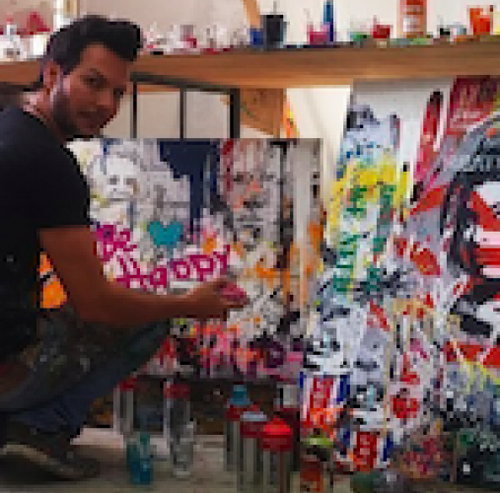 Populated by designers, stylists, alternative boutiques and, obviously, street artists, Florentine's mood is imprinted in the artist's DNA, giving life to paintings where iconic characters and objects float in a shower of colors and materials, with exquisitely tactile results.