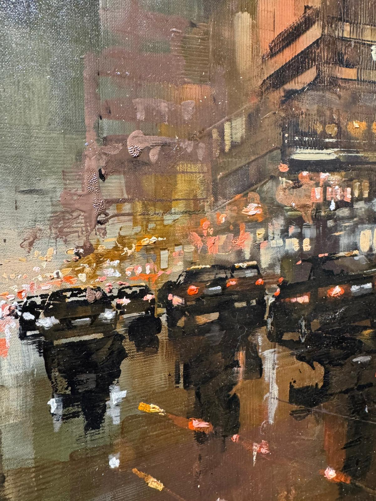 Use of oil paint and surprising painting technique. Spatula strokes and refined brushstrokes. Plays of light and shadow. Representation of space through the masterful use of perspective. Careful study of the metropolises represented on canvas, captured from dusk to night. We are talking about Martin Koester. His extraordinary works have a truly astonishing communicative capacity. The urban territories of Koester are surrounded by a dark luminosity. Melancholic metropolises. Cars queuing and anonymous citizens reflected in puddles. Skylines caressing the tumultuous sky. Skyscrapers choking the street. Koester's ability to capture the city with sensitivity and expressiveness recalls the aesthetics of pre-Impressionist painters. The German artist creates a work that transforms into an emotional experience.