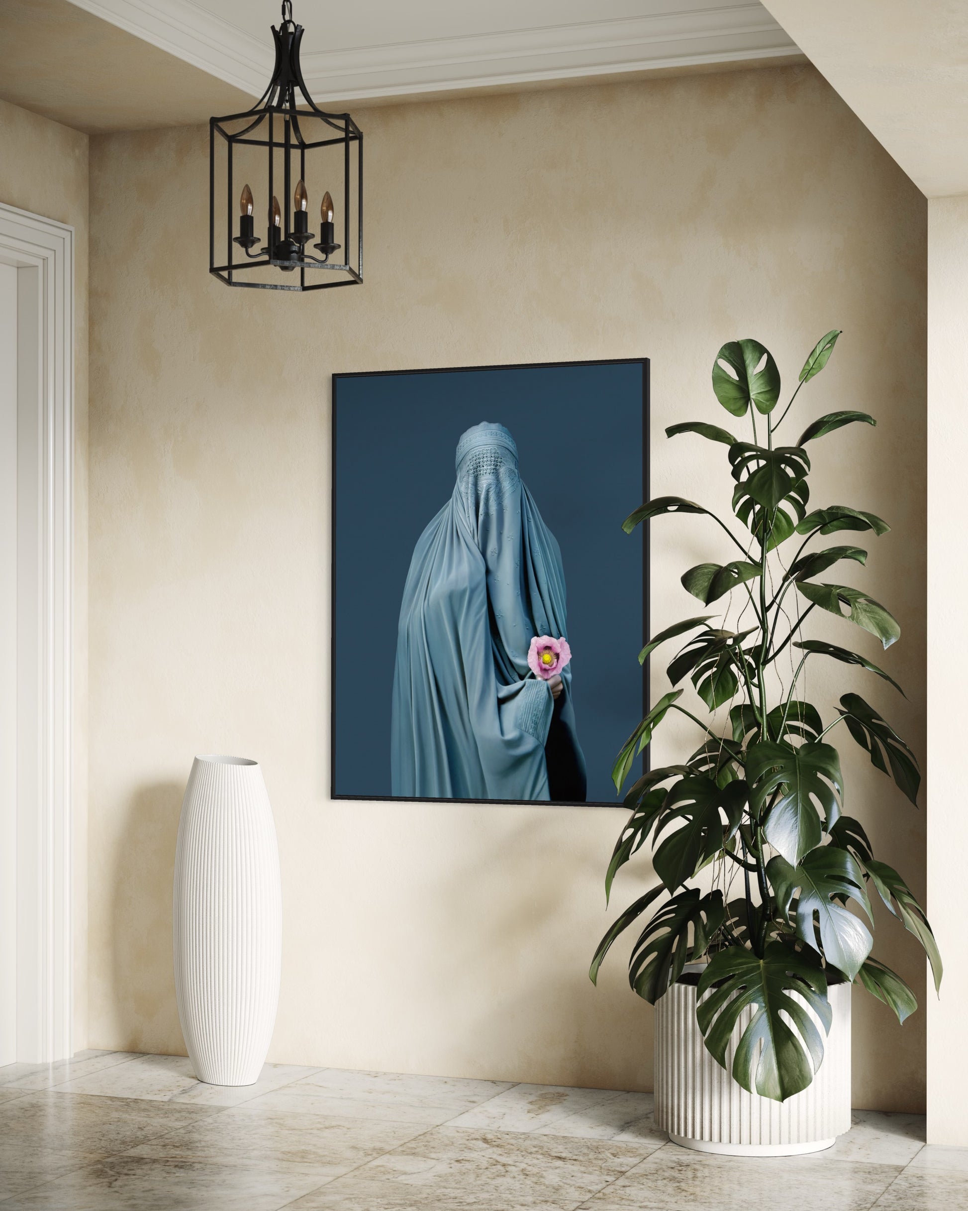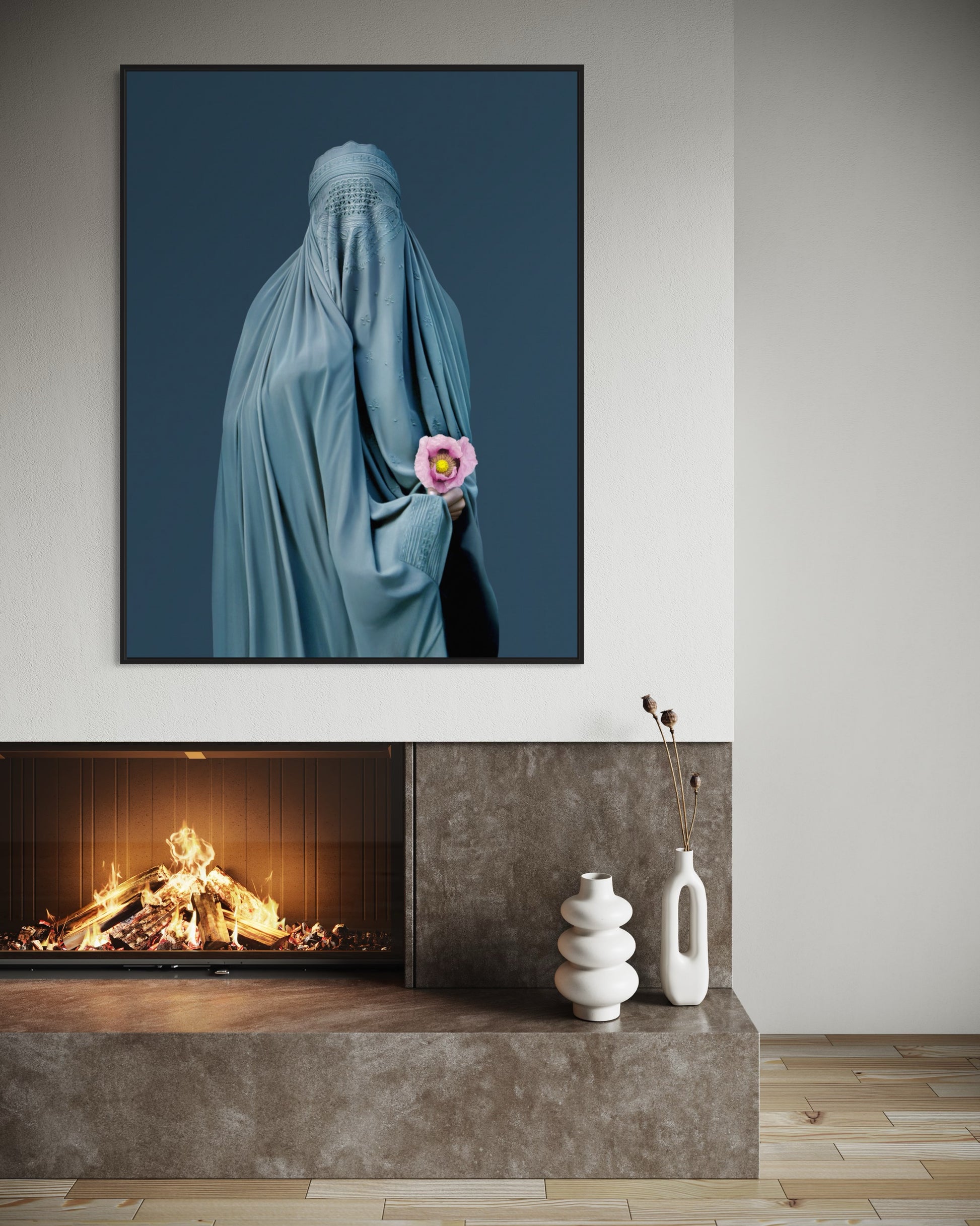 A woman in a Burqa offers us a flower. The flower, however, is an opium poppy. This work makes us reflect on the condition of women in countries like Afghanistan. Furthermore, Gian Paolo Tomasi highlights the problem of the cultivation of the opium poppy used to produce heroin. This work would seem to tell us about two fundamental problems in Afghanistan: women's rights and drug trafficking