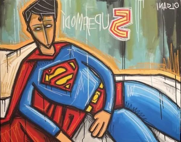 This canvas painted by Daniele Oldani with pastels and acrylic colors is a reproduction, in Modigliani style, which portrays the superhero from the planet Krypton, Superman. The refined “Supermodi” is stretched out and his body follows the curvature of the sort of white sofa on which he is lying. Even in this work the references to Modigliani are evident: the almost two-dimensionality of the body and the lack of pupils transform Superman into "Supermodi". The costume he wears is the typical blue suit with the red "S" imprinted on the yellow background on the chest, with red briefs and cape.