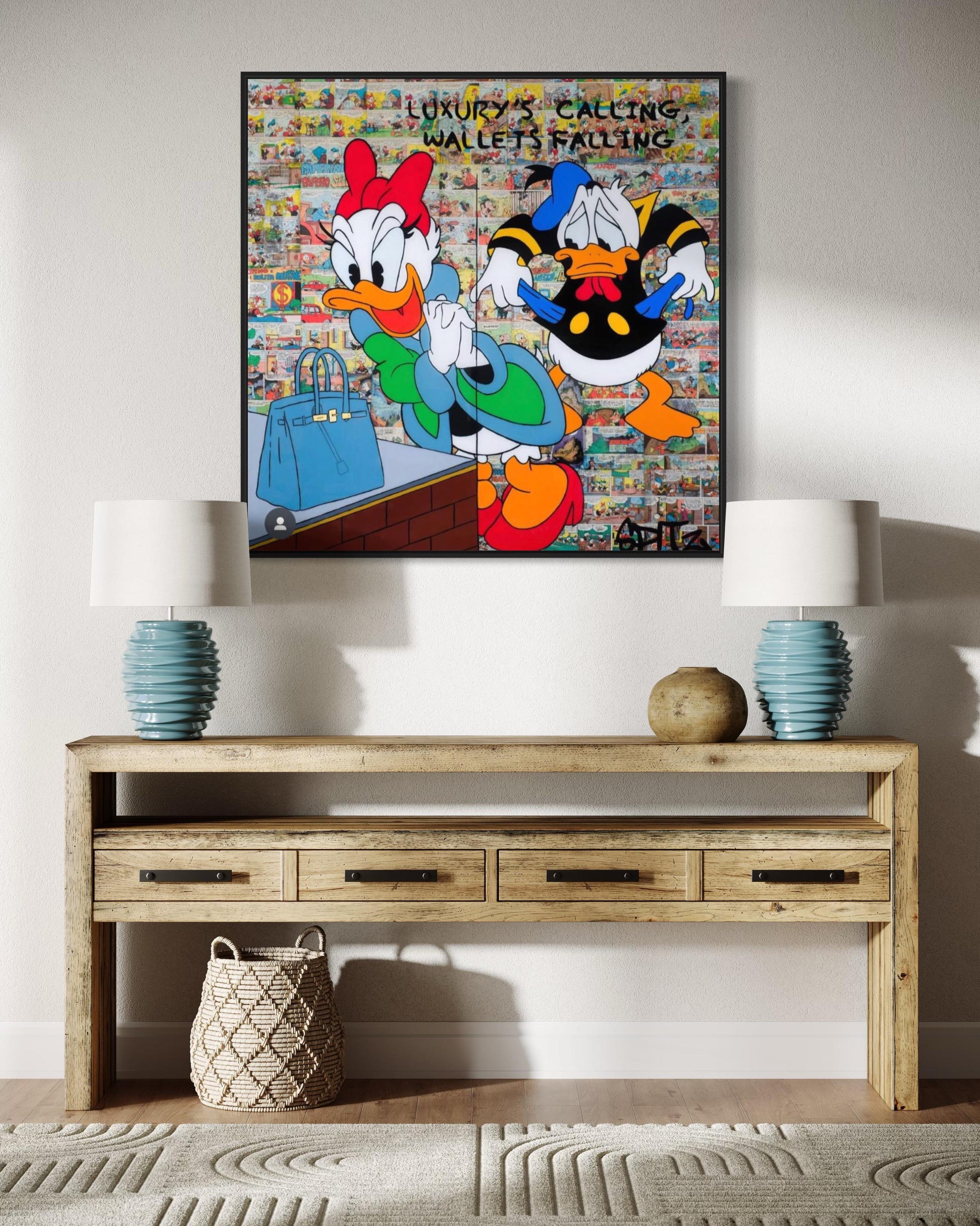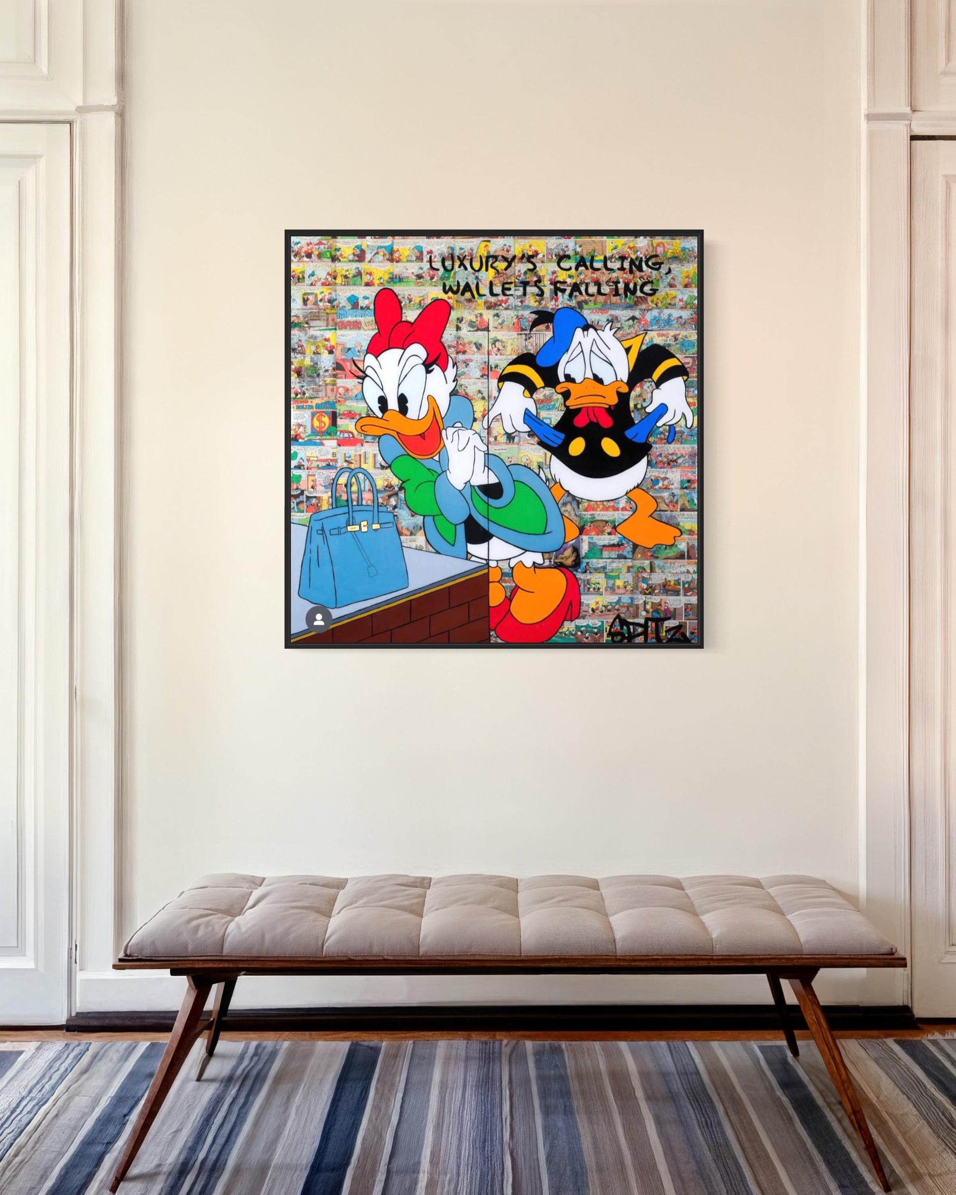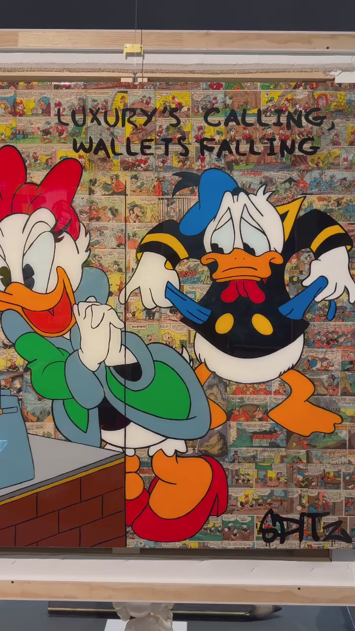 Edward Spitz is an artist who says little about himself, and prefers his paintings to do the talking. His works are exhibited in various public and private places in Italy and abroad. Participates in collective and personal exhibitions. His work is ironic and polite, the basis of his paintings are vintage illustrations of period comics on which he makes his characters speak, who look and wink at whoever is in front of them. They bring to the foreground, magnify the value of a key figure: Minnie, Mickey Mouse, Donald Duck... they are there ready to tell us a fragment of a real story! With this mechanism the paintings break the narrative scheme of the comic and become works of art.