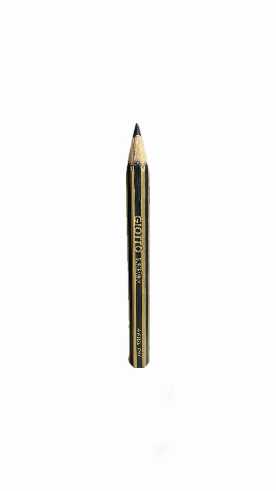 This artwork depicts a black pencil from the renowned Giotto brand and is made of Carrara marble. What immediately strikes the observer is the artist's incredible technical mastery. The sculptor has worked the marble with such precision that it appears to be wood. The pencil deceives the viewer. What is the true nature of the material—marble or wood?