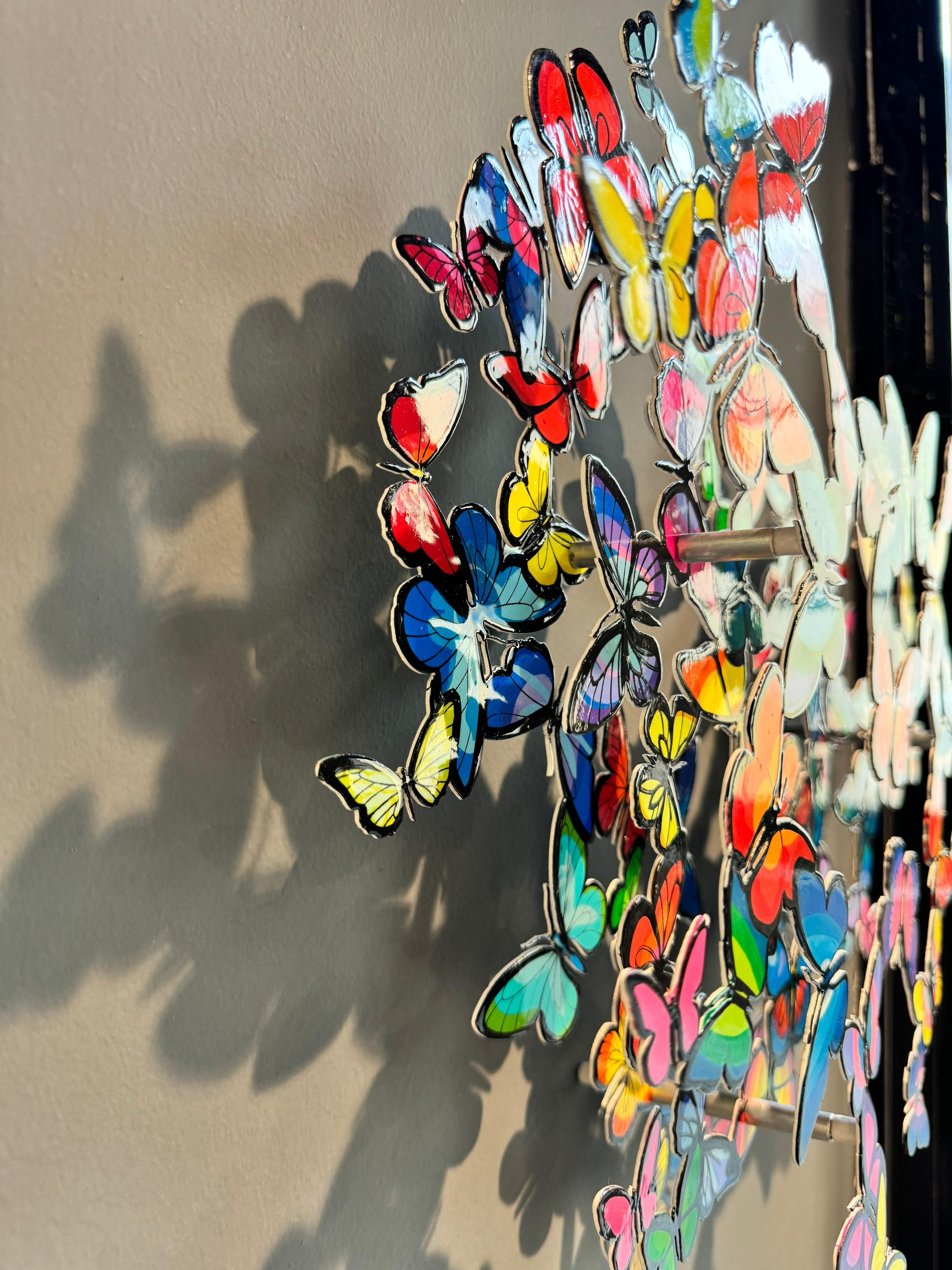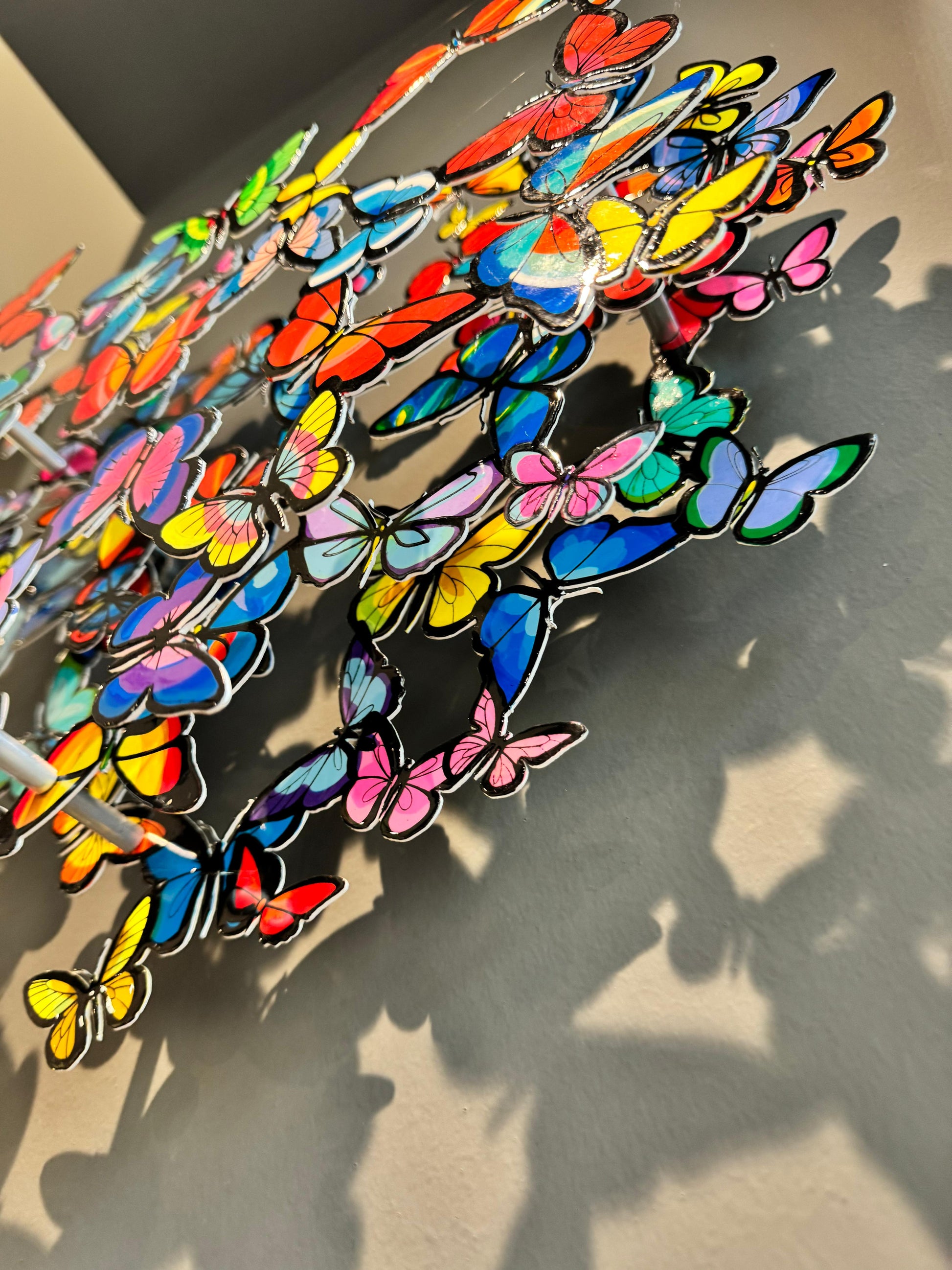 Anna Arshinov was born in 1994 in Yalta, Ukraine, a beautiful resort town on the southern coast of the Crimean peninsula. Anna began her artistic training at the local art school, focusing mainly on painting. Anna becomes a professional tattoo artist, becomes interested in printing and works in a screen printing laboratory, developing new creative skills. Anna has always been fascinated by nature and its treasures, expressing her love and admiration through art. Therefore, he created the recent series of colorful metal butterfly wall sculptures. Anna defines butterflies as a symbol of joy and hope.