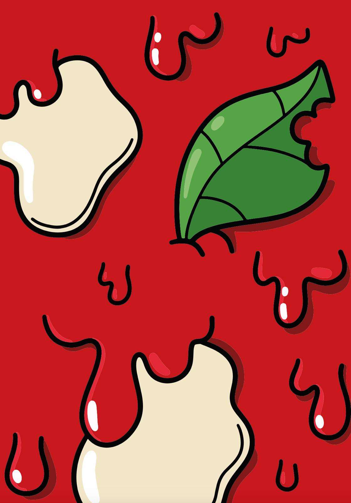I tratti di questo alimento sono disegnati mettendo in luce i golosi ingredienti di questo piatto. La fetta di pizza è realizzata in modo caricaturale. Gianpiero mette in luce i golosi ingredienti di questo piatto. La salsa di pomodoro e la mozzarella fusa sembrano letteralmente colare dalla tela. Infine, il verde del basilico rende l'opera ancora più appetitosa.