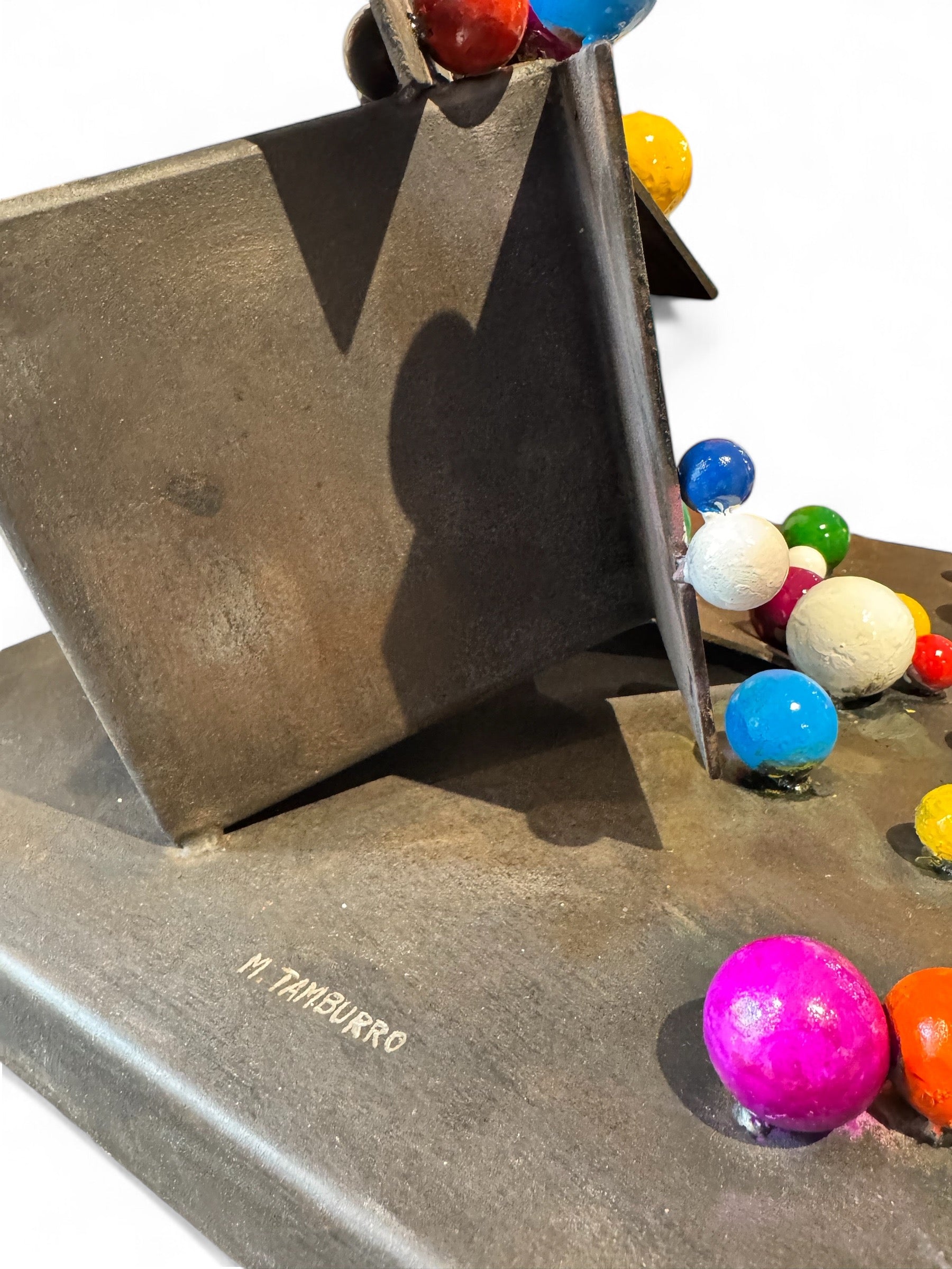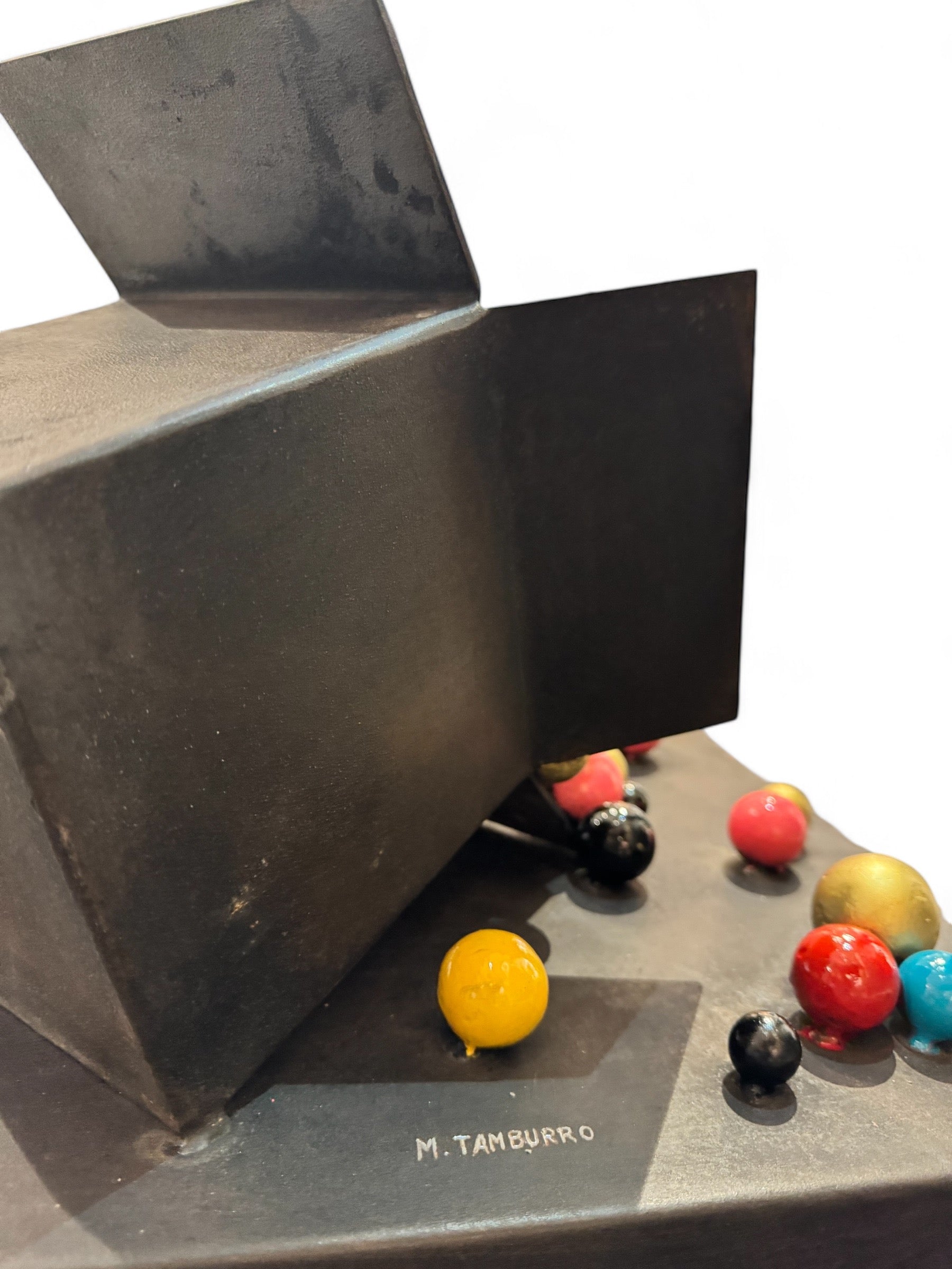 Nato a Perugia nel 1974. Diplomatosi in Architettura e Arredamento presso l’Istituto d’Arte della sua città, nel 1994 si trasferisce a Milano e si iscrive al Corso di Scenografia dell’Accademia di Belle Arti di Brera. Entrato in contatto con l’ambiente artistico milanese, inizia a collaborare con fotografi e scenografi come assistente. Scelta non casuale, dal momento che Marco Tamburro ha già maturato un profondo interesse verso gli ampi spazi teatrali, dentro i quali immagina e dà forma a pannelli pittorici dalle dimensioni imponenti, lasciando a briglia sciolta la sua visionaria fantasia. Tamburro resta affascinato soprattutto dalla pittura e dalla sua grande potenza espressiva. In un’epoca in cui ci si interroga su dove questo forma artistica stia andando, lui viene invaso da una potenza espressiva capace di tradurre semplici immagini in un mezzo comunicativo. Marco Tamburro riflette sulla speculazione e la versatilità della forma pittorica, in grado di interagire con altri linguaggi artistici quali il teatro, la fotografia, l’arredamento, l’architettura e tutto ciò che occorre per realizzare un impianto scenografico. A Milano espone per la prima volta: le sue opere compaiono in gallerie e spazi alternativi del tessuto urbano, legati in primis agli ambienti della moda e del design. Da sempre attratto da Roma per le innumerevoli bellezze artistiche e la vita metropolitana frenetica, così diversa da quella milanese, Tamburro si trasferisce nella capitale. La sua passione per il teatro può qui nutrirsi copiosamente: l’artista collabora con diverse compagnie teatrali, si dedica a tempo pieno alla pittura, fonda un’associazione culturale che si occupa esclusivamente di arti visive e nel 1999 si diploma all’Accademia di Belle Arti di Roma.