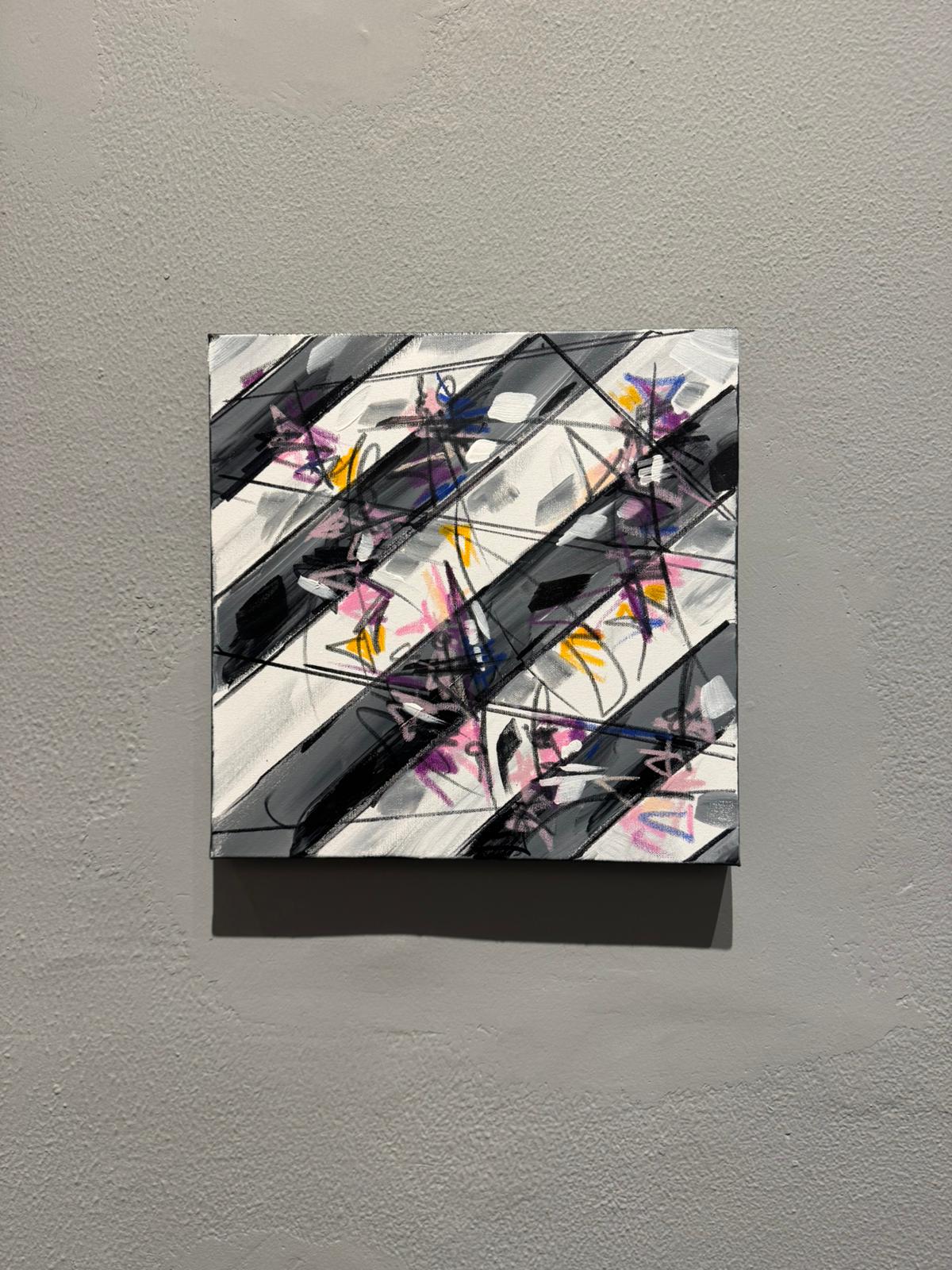 I colpi di colori vivaci stesi dall'artista attenuano l'irrequietezza delle tonalità sfumate di bianco, grigio e antracite, tipiche dell'asfalto. Individui alienati attraversano frettolosamente strisce pedonali, trasportando borse durante una giornata di shopping. In effetti, l'unico svago che la vita metropolitana spesso offre è l'acquisto sfrenato, lo shopping compulsivo. Tuttavia, l'imperativo rimane la fretta: shopping sì, ma veloce. Magari durante la pausa pranzo.