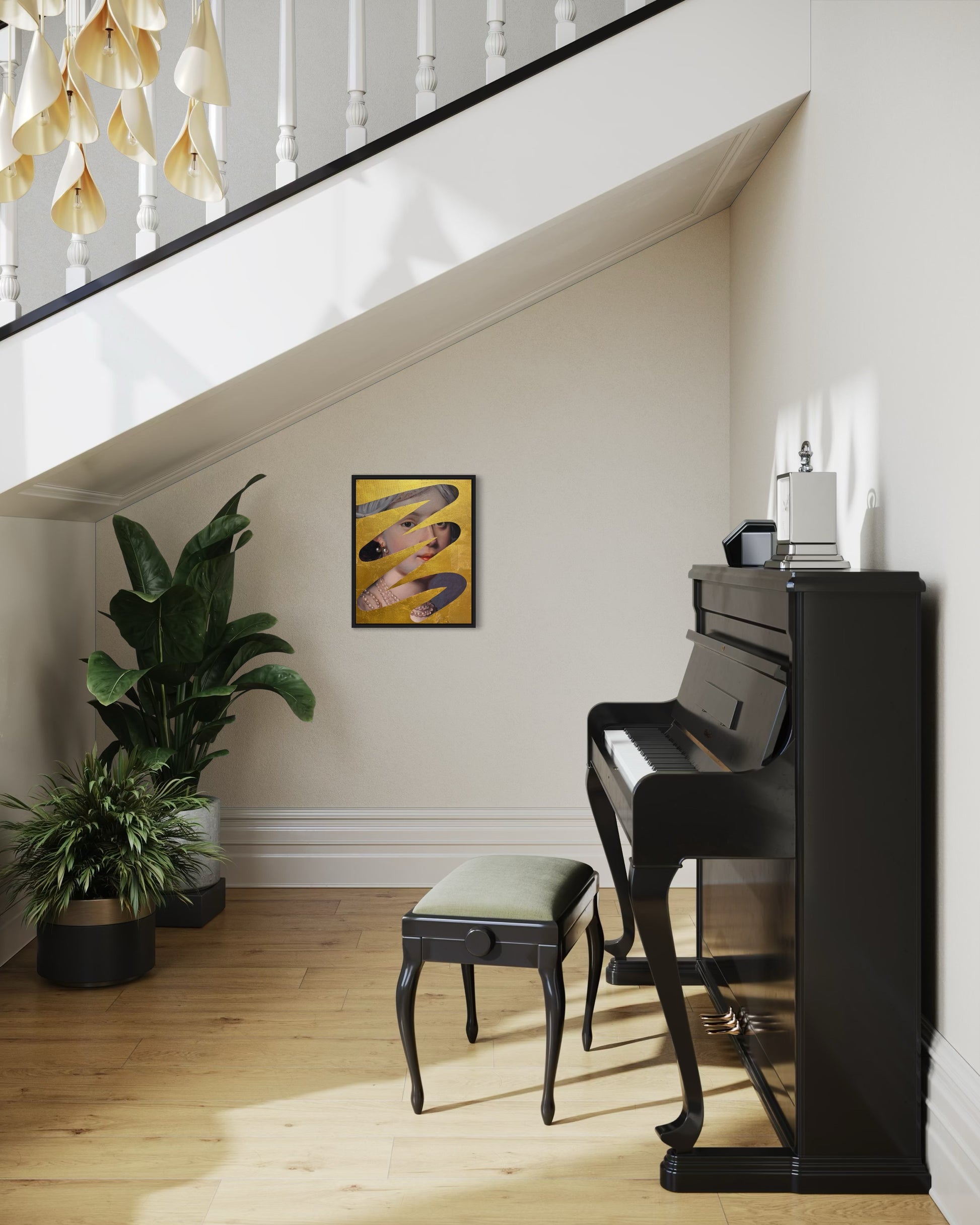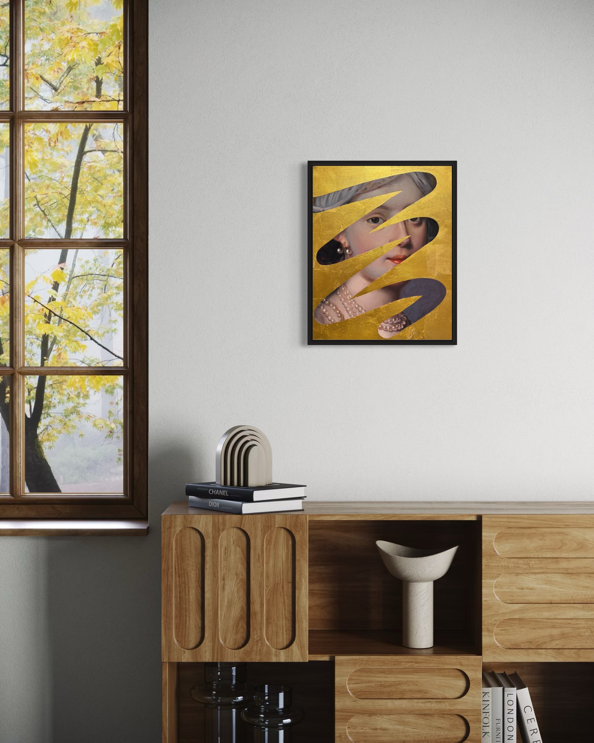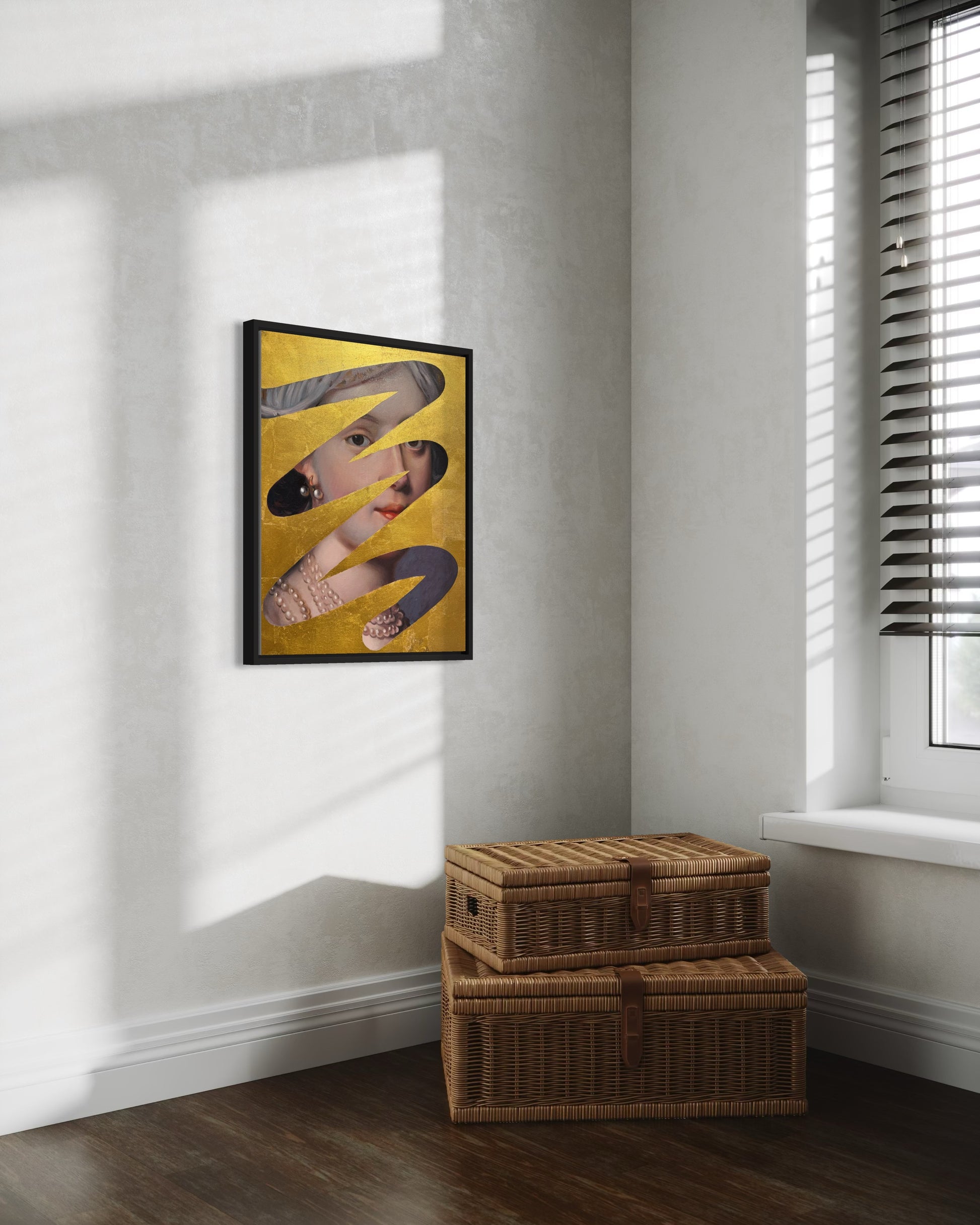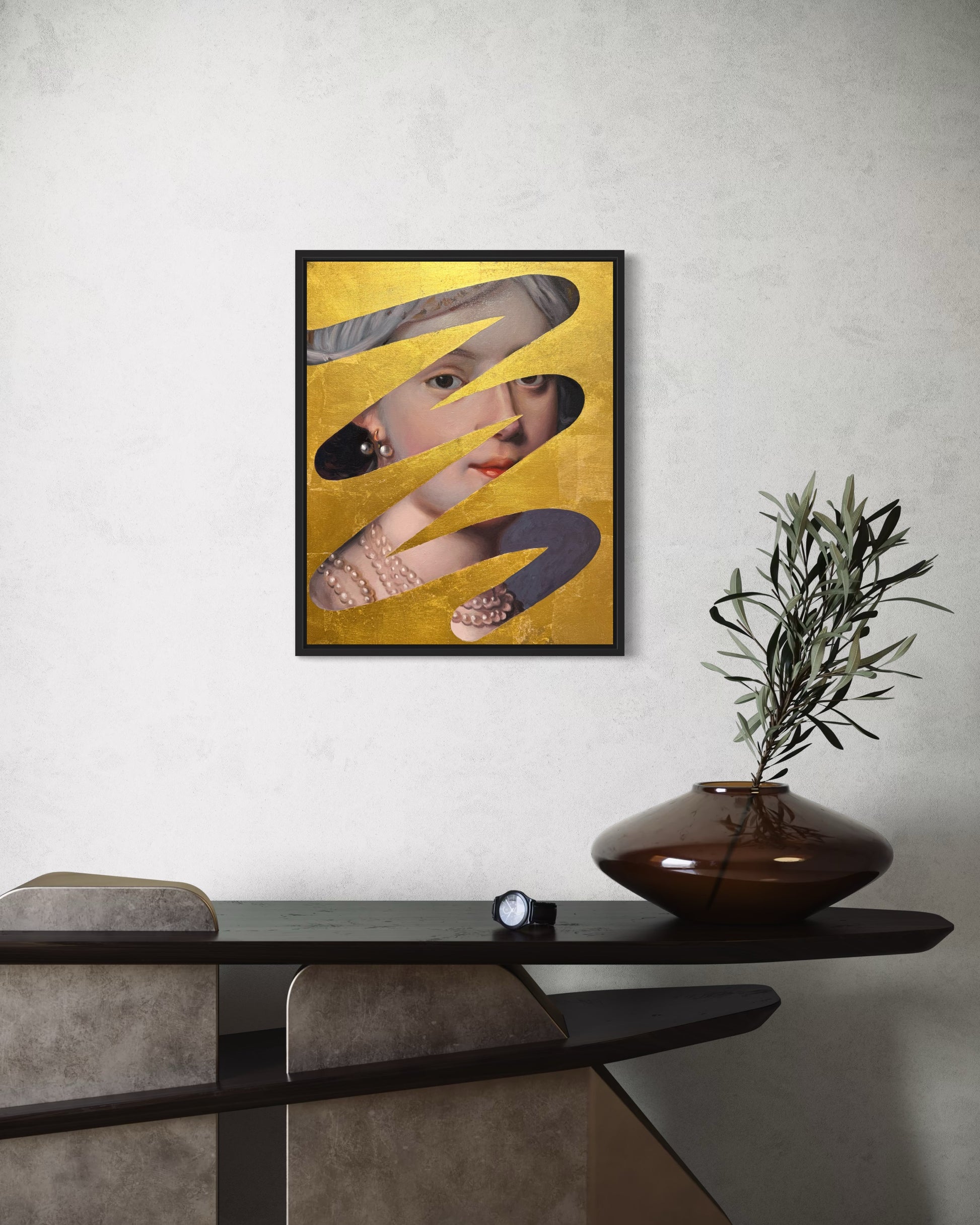 Lino Lago riproduce un'opera di George Knapton, ritrattista inglese attivo nel 1700 a Londra. Il volto zommato della fanciulla viene ricoperto da uno strato di foglia oro. Uno scorcio sulla tela rivela il volto nascosto dalla colata dorata. Anche questo Fake Abstract unisce due tendenze opposte: arte astratta e figurativa. Per Lago non esiste una supremazia tra i due stile pittorici. Fake Abstract è la convivenza dell'antitetico.