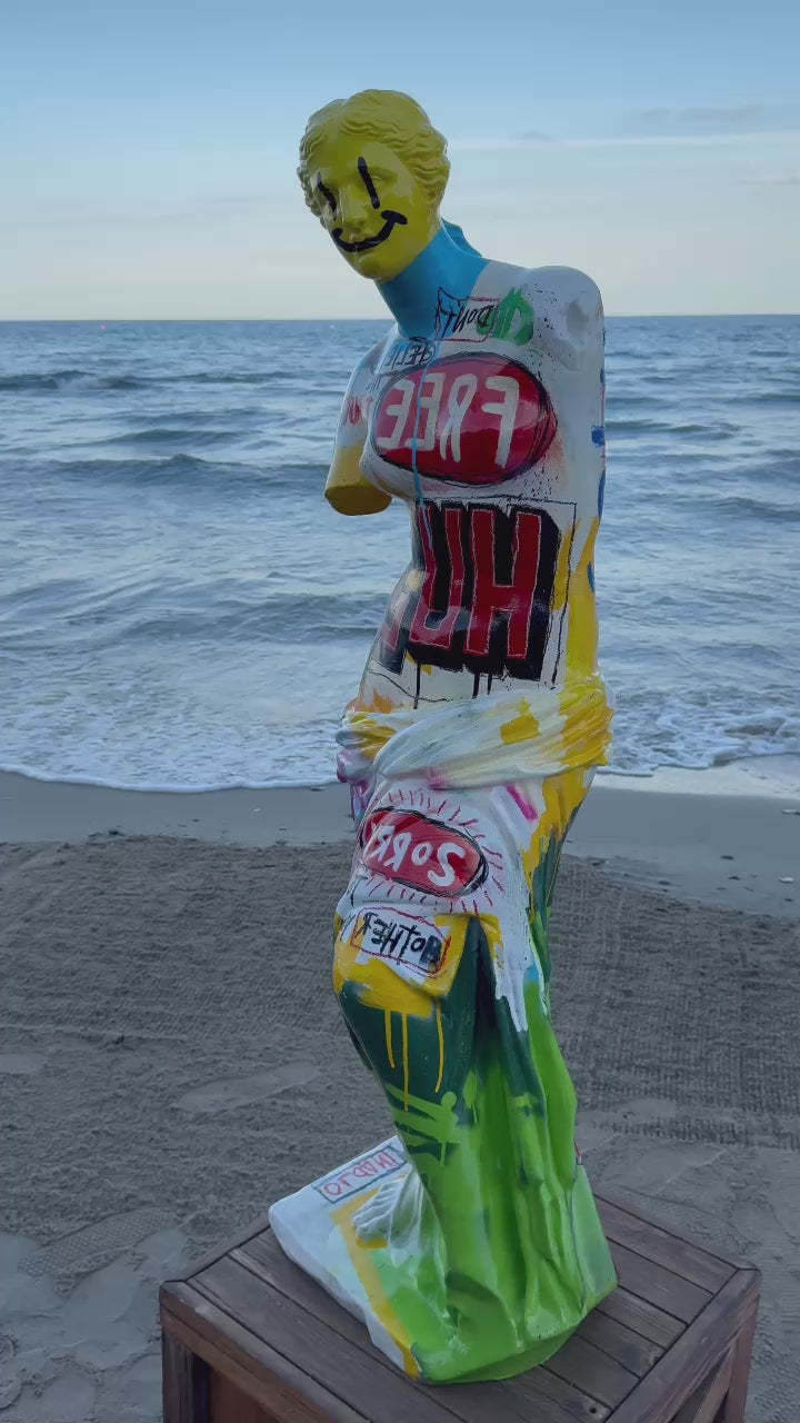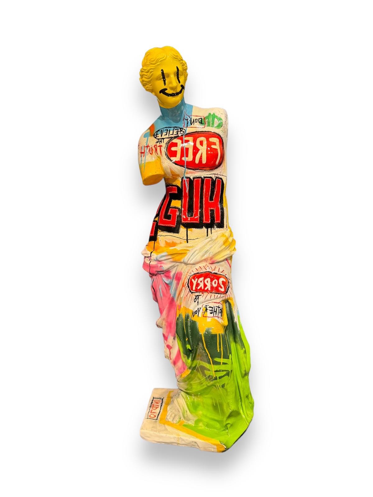 Oldani reinterpreta la statua "Venere di Milo", capolavoro scultoreo dell'antica Grecia. Questa scultura, trovata senza braccia, è stata realizzata da Alessandro di Antiochia. Oldani intitola la sua reinterpretazione "Free Hugs". La critica riguarda le false promesse. Il volto della Venere è truccato con linee verticali e un sorriso sugli occhi che ricorda il trucco di un pagliaccio. Lo sguardo della Venere sembra dileggiarci. Come possiamo ricevere un abbraccio gratis da un'entità senza braccia? per l'artista milanese viviamo in una società basata sull'inganno: politica, religione e mass media promettono continuamente cose che non possono mantenere.