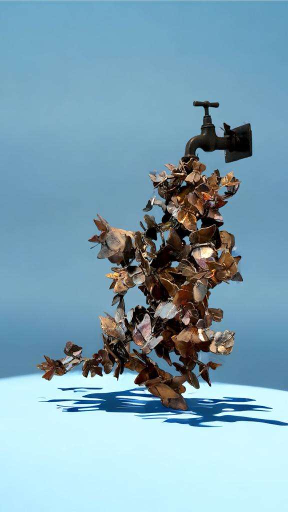 Libertà. Un rubinetto dal quale fluiscono della farfalle. L’insetto variopinto è simbolo di rinascita. La farfalla è la nostra anima che si trasforma e si rinnova. La nostra parte immateriale e più profonda sta sgorgando. Sei disposto ad aprire la tua anima e le tue emozioni? Devi solo decidere se tenere aperto o chiuso il rubinetto.