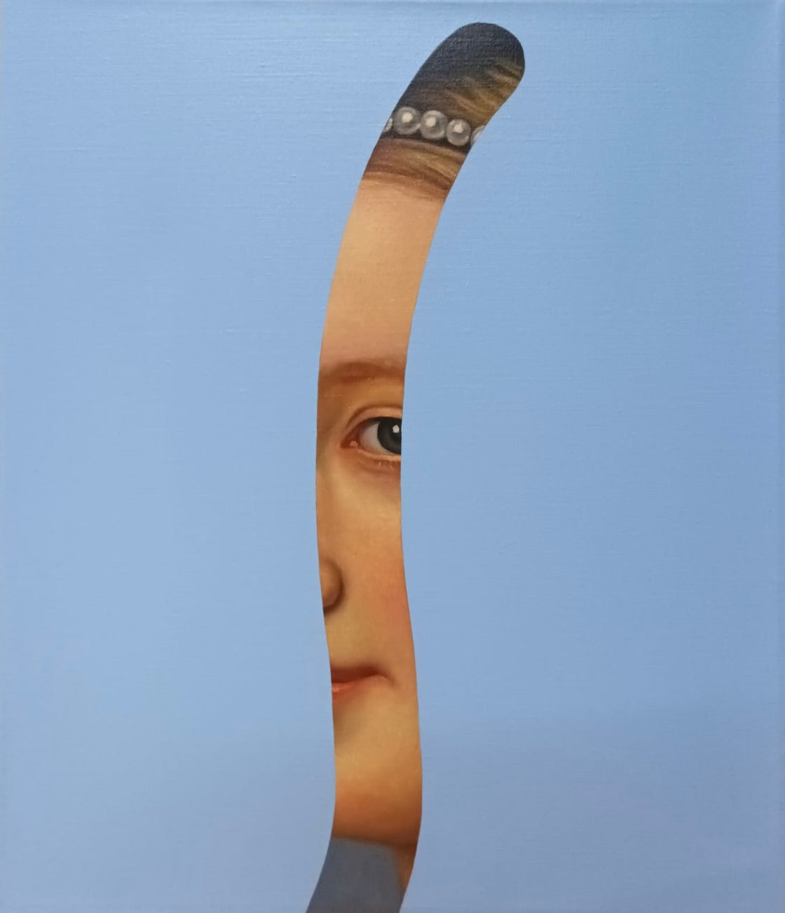 Il celebre dipinto "Giuditta e Oloferne" di Caravaggio viene reinterpretato da Lino Lago. L'artista spagnolo utilizza il volto di Oloferne per realizzare un altro dei suoi "Fake Abstract". Uno squarcio sulla tela, dipinta di arancione, svela un frammento del volto della famosa vedova ebrea. Il contrasto tra arte astratta e figurativa continua.