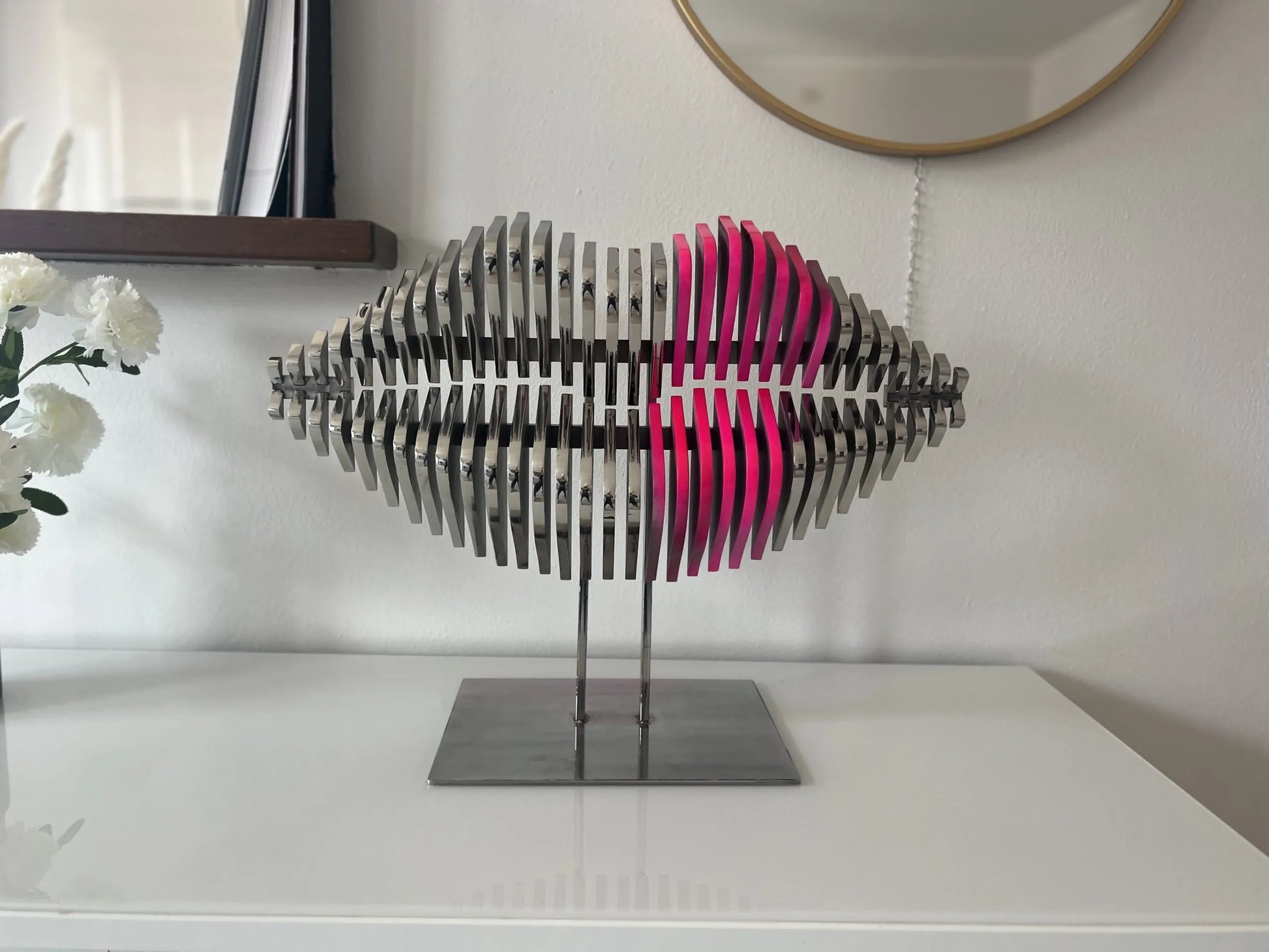 Le labbra, simbolo di amore e sensualità, si trasformano in una scultura in acciaio inossidabile. Questa opera rappresenta l'essenza muliebre. Le donne sono forti come l'acciaio e delicate come una carezza di rossetto sulle labbra.