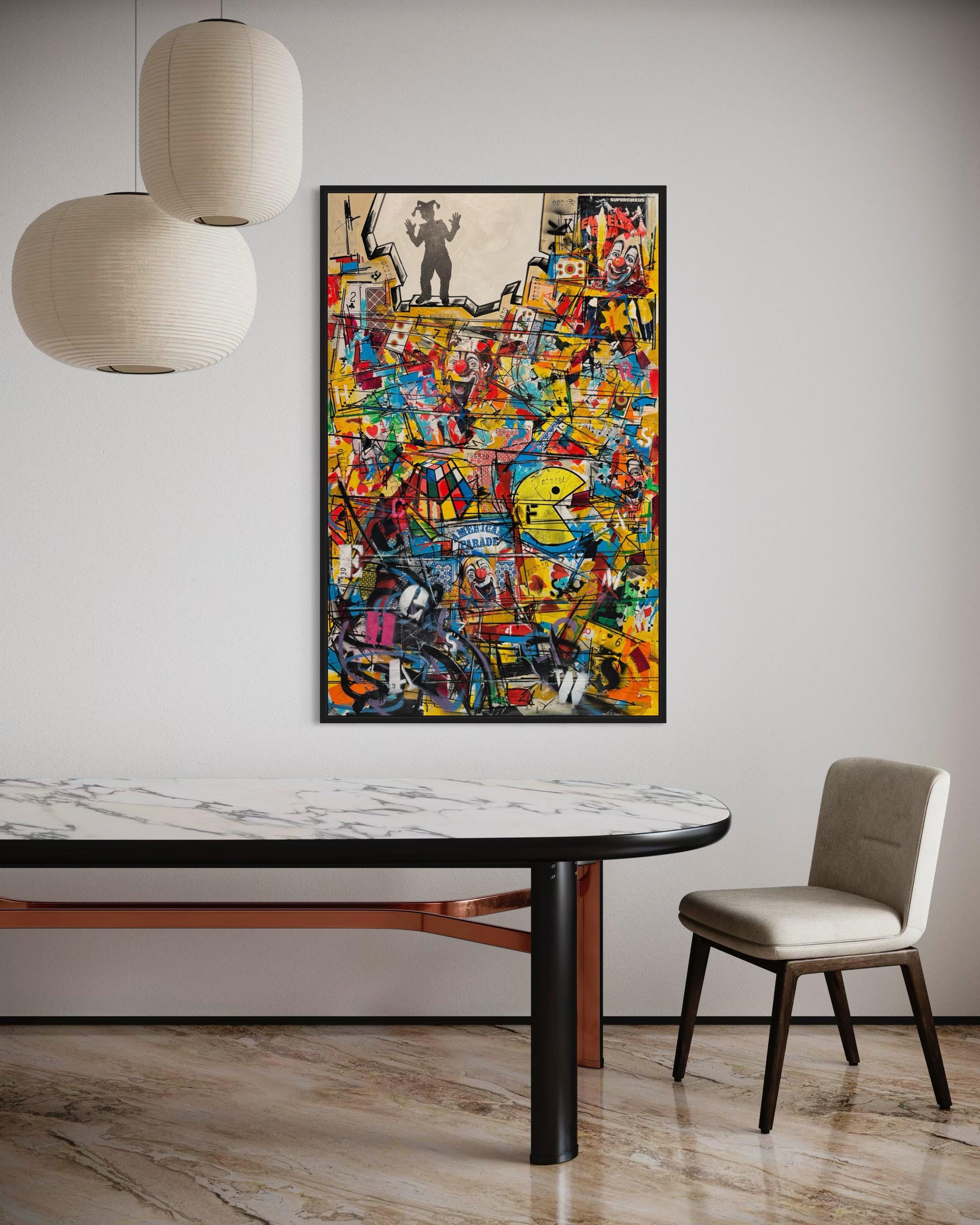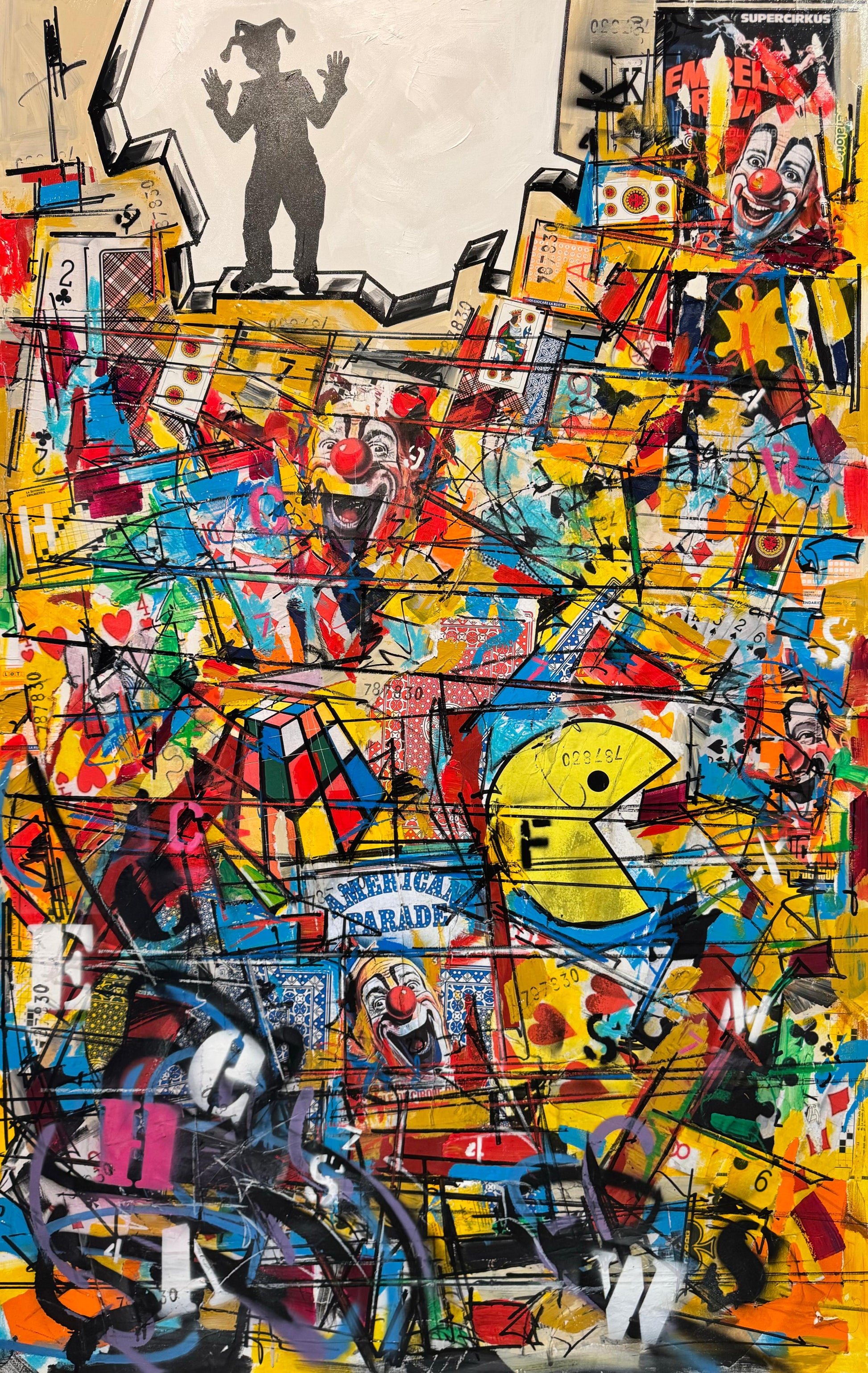 Sopra il muro fratturato notiamo delle figure in ombra: un giullare, Pinocchio, una donna e figure umane indefinite. Solo loro possono svelare il mistero: cosa si nasconde oltre? Forse un mondo lontano dalle logiche e dai meccanismi della nostra società capitalistica. Una nuova città-Eden dove regna la felicità.