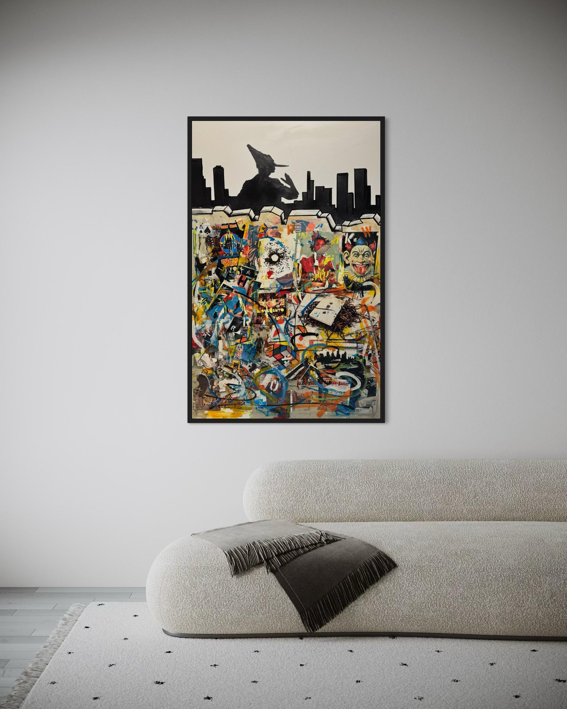 La delimitazione, dunque, sembra essere una gabbia che rinchiude gli individui. L'obiettivo? Il pensiero unico, l'omologazione, il bombardamento mediatico. Il muro è la società che ci chiude al suo interno, e attraverso i mass media veniamo storditi da un fiume in perpetua straripanza di immagini.