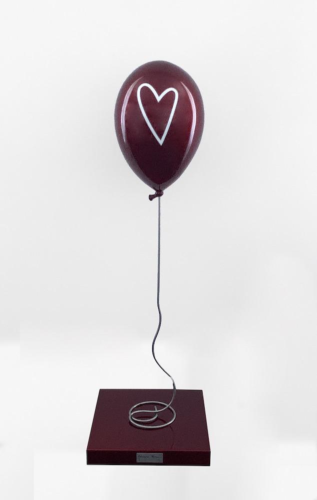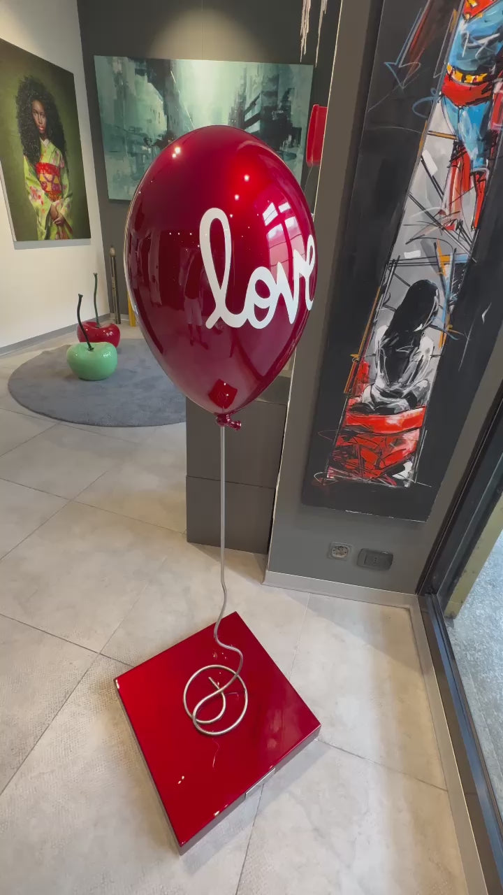 Il palloncino, su cui è scritto "LOVE" con un cuoricino, evoca un senso di leggerezza e spensieratezza tipico dei palloncini dei giochi per bambini. Questa scultura è un'opera d'arte Pop che gioca con l'idea dell'etereo e del transitorio, pur essendo realizzata con materiali solidi.