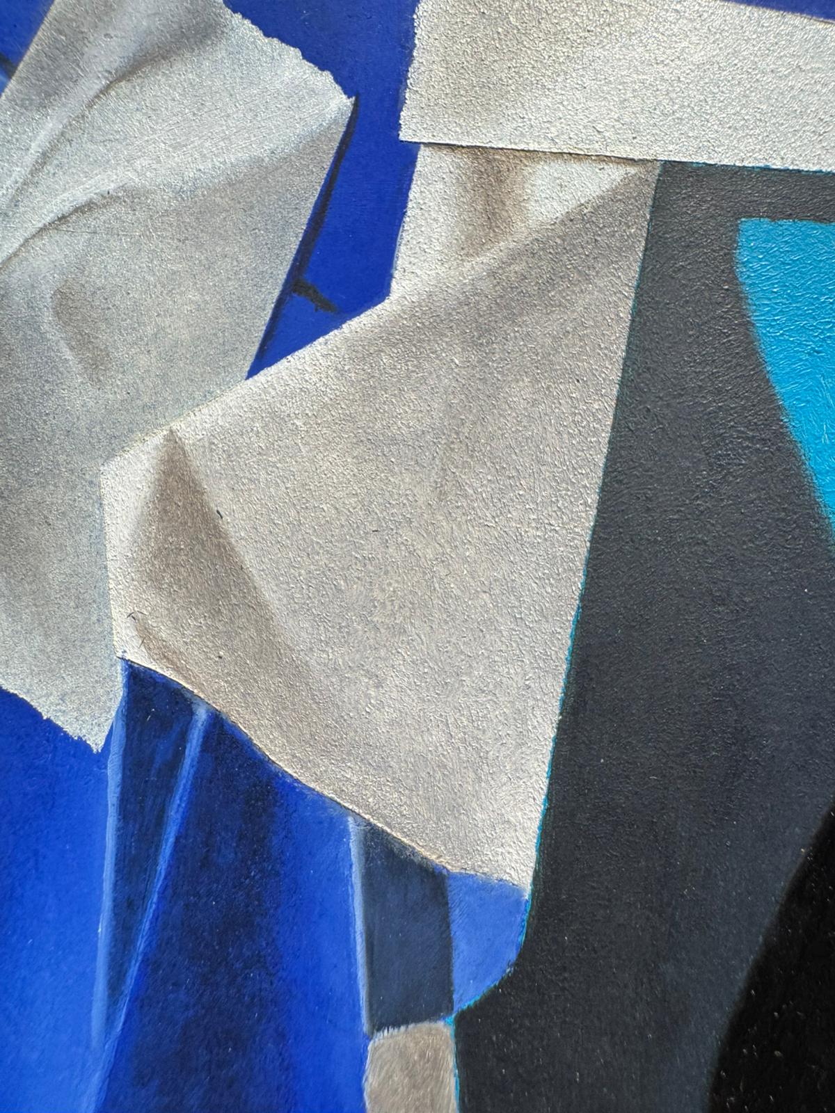 Intorno al ritratto si vede della carta da imballaggio fissata con dello scotch. A prima vista sembra vera, come se fosse stata applicata sopra la tela. In realtà anche la carta e lo scotch sono dipinti, con grande attenzione ai dettagli. Le pieghe della carta, le ombre e le trasparenze del nastro adesivo sono realizzate in modo così preciso da creare un forte effetto di profondità.