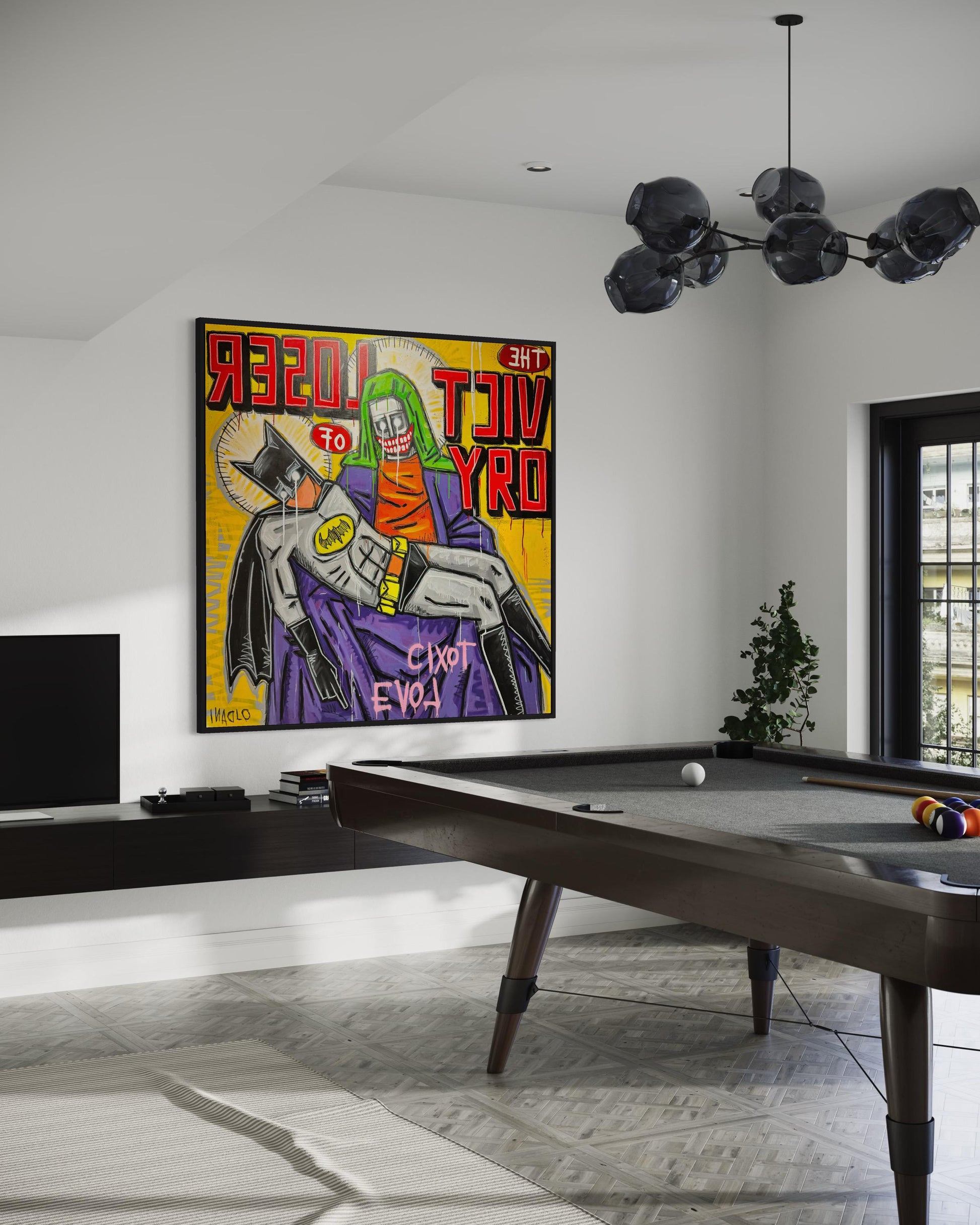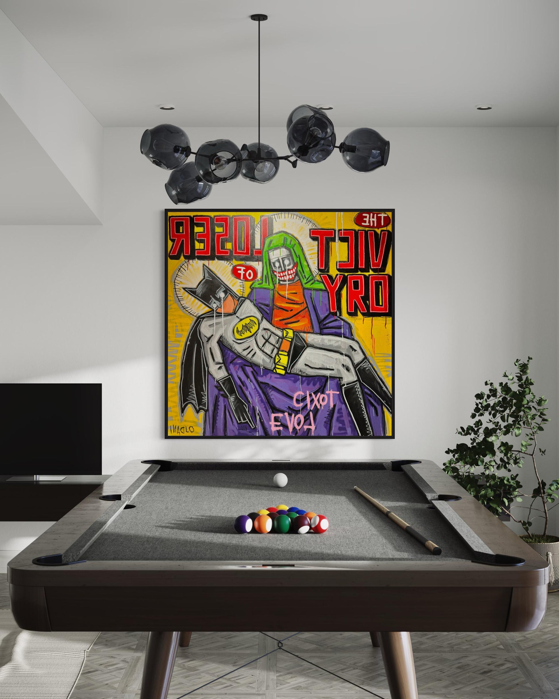 L'opera è una dichiarazione eloquente: il perdente, rappresentato da Joker, viene finalmente messo in una posizione di potere e centralità. La scelta di Joker non è casuale; egli incarna il caos, l'antieroe che sfida le convenzioni e le norme sociali.